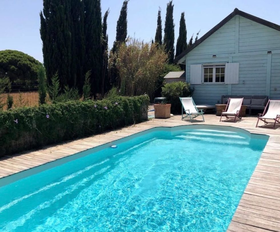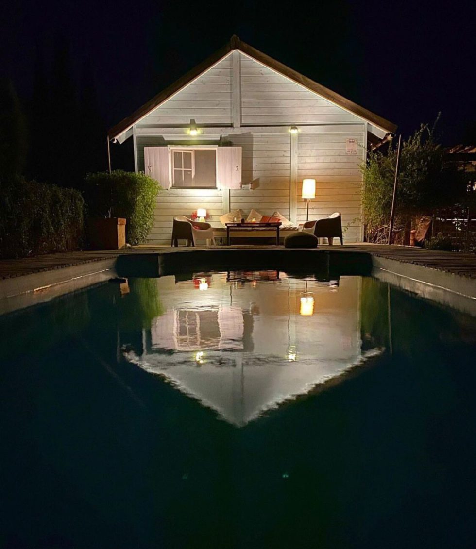 The beautiful outdoor area has a spacious garden with small cocktail bar, outdoor shower and pool area with sitting area and sun loungers.